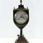Schwarzpolierte eichenhölzerne Vasenpendüle mit Emailzifferblatt. 30-Stundenwerk mit Voll- und Halbstundenschlagwerk Österreich